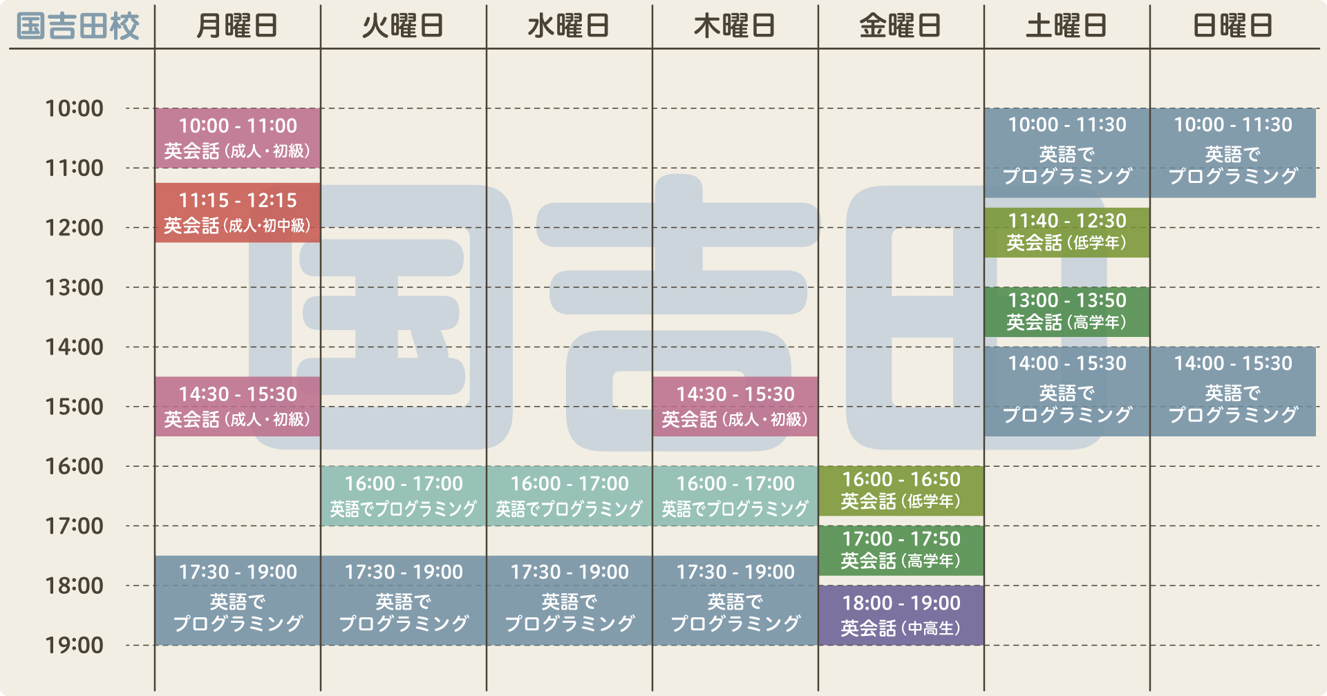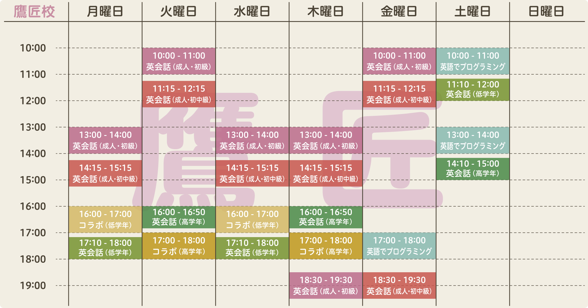エイム・ランゲージ・ラボ は2校あわせて平日から週末まで幅広い時間帯で開講しており、楽しみながら英語力やプログラミングスキルを無理なく伸ばすことができます。